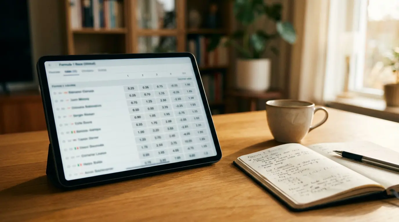 La cuarta variable es la meteorología. La lluvia en F1 lo cambia todo — aumenta la varianza, favorece a los pilotos con buen manejo en mojado y destruye las predicciones basadas en ritmo seco. Si hay más de un 40% de probabilidad de lluvia, mis modelos pasan a modo «alta varianza» y ajusto las apuestas hacia cuotas altas de pilotos con buen historial en lluvia.